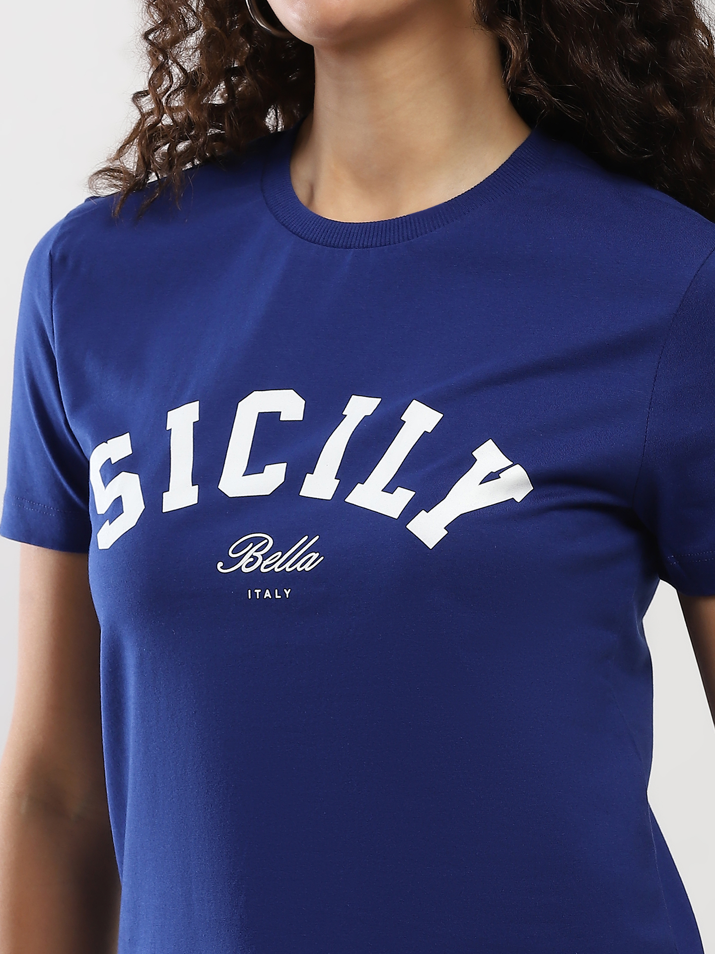 Cotton T-shirt. Round neck and short sleeve. Text detail SICILY print .