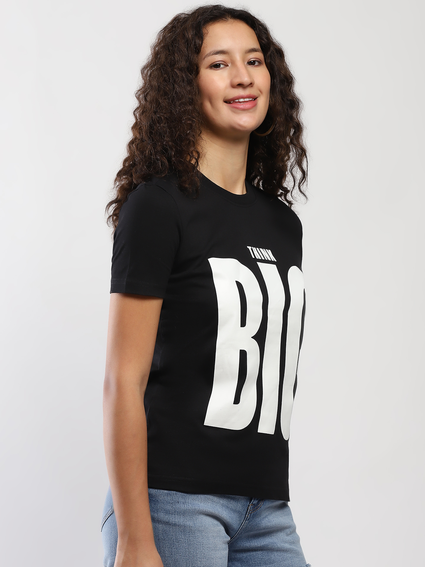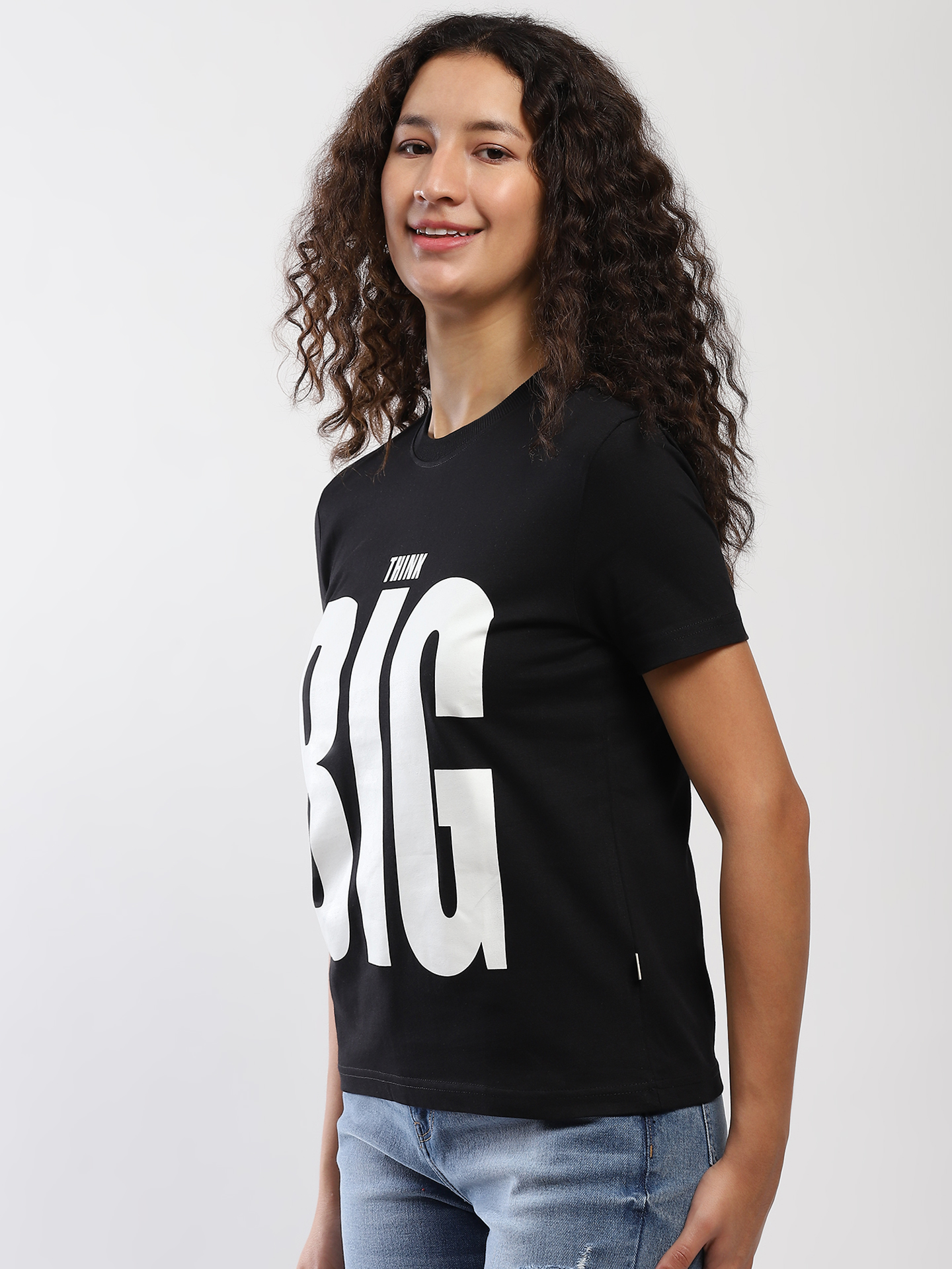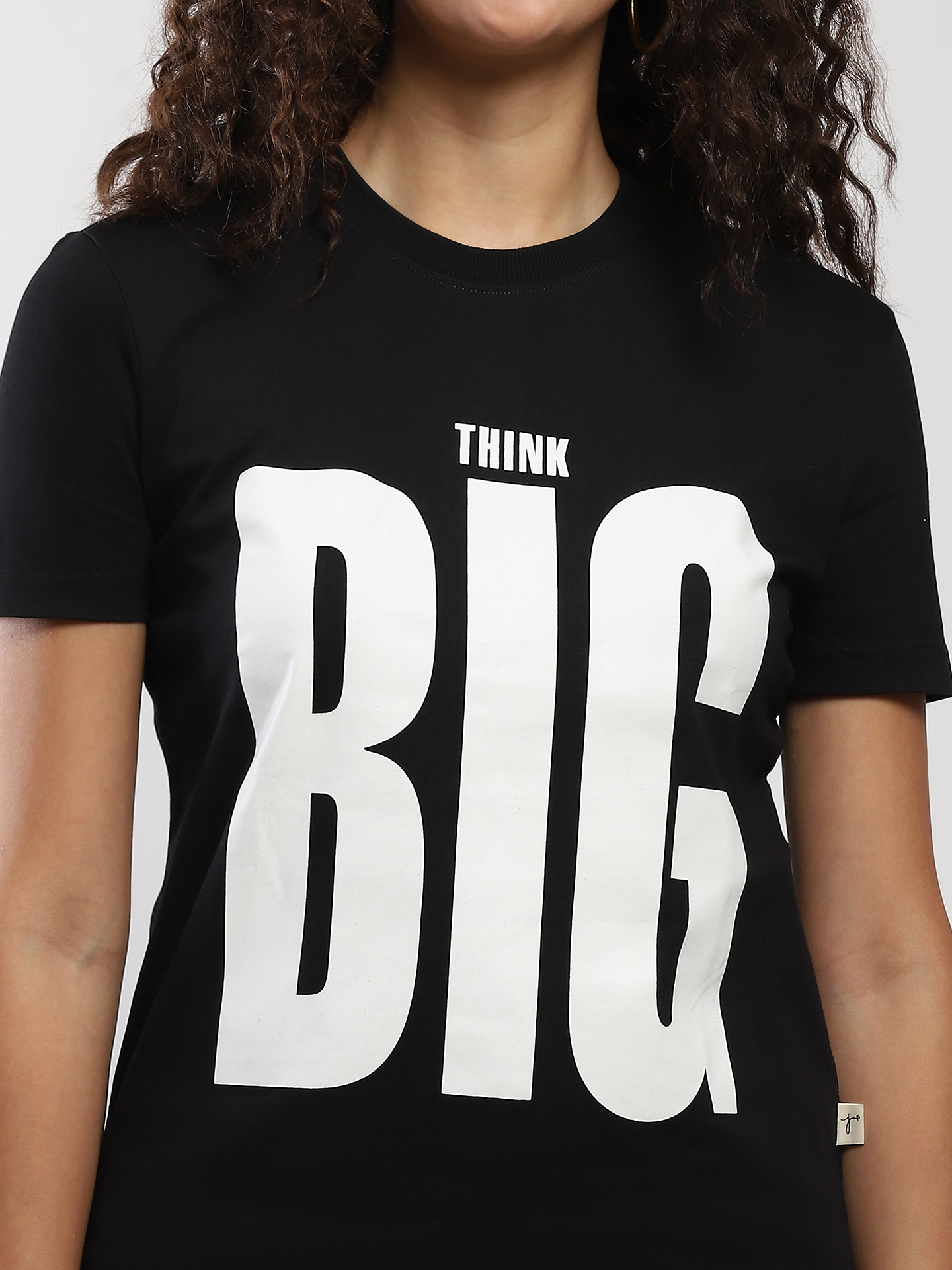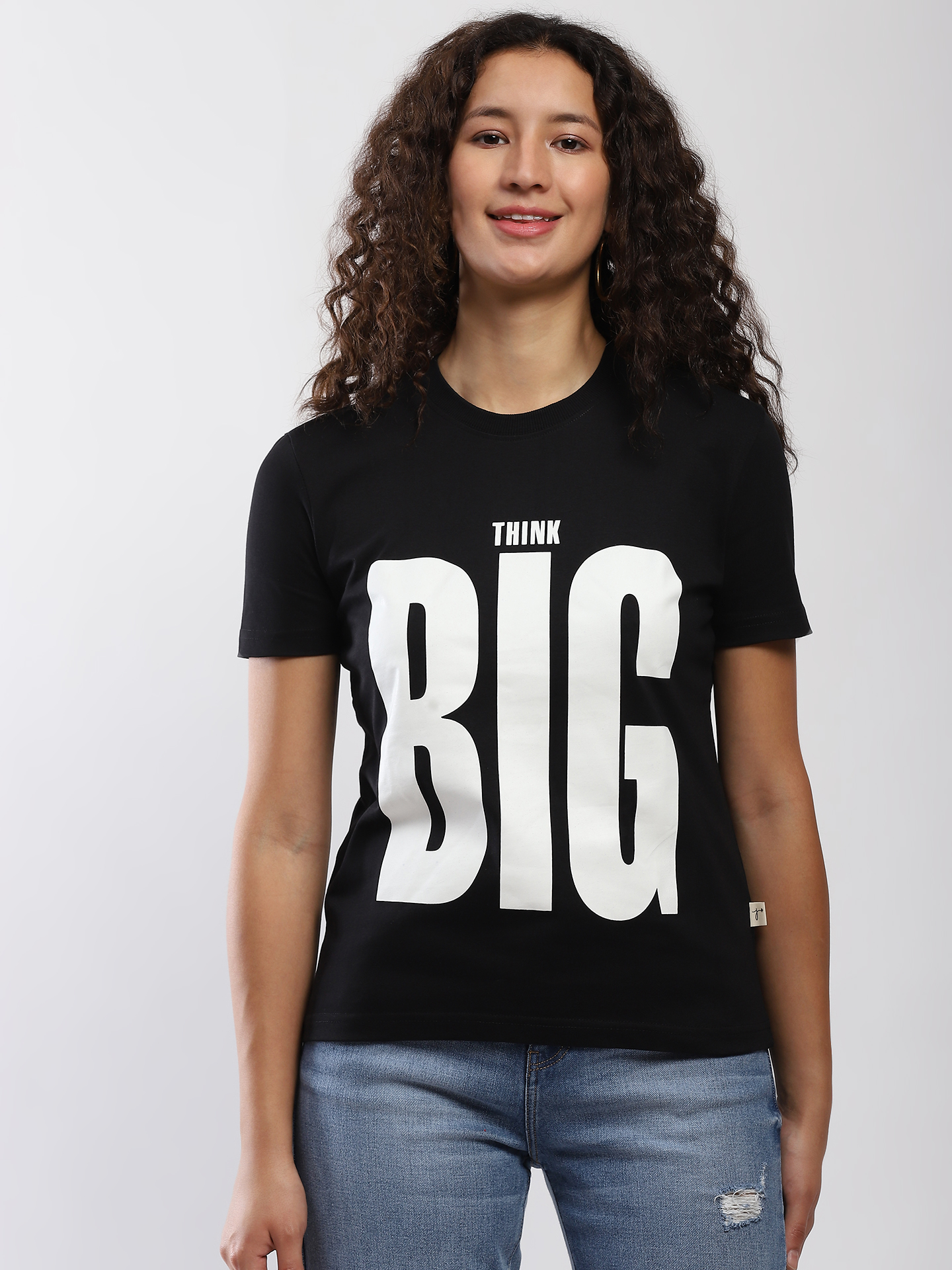 Cotton  T-shirt. Round neck and short sleeve. Text detail  Think Big print .